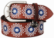 Our Equine Couture Sophia Leather Belt will add just a touch of bohemian style to your wardrobe. The cheerful blue and white floral pattern stands out against the rich Oakbark leather. The Sophia belt will complete any outfit, whether it be worn with breeches or jeans.