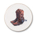 Top your placesetting in western style with a portrait of a well worn and much loved pair of cowboy boots. The art on our round salad plate is drawn, painted and designed by master artist Leesa Greenlee. The boots look so real you can almost feel the buttery leather. A finishing touch of a shiny gold band at the plate rim helps create an ambiance of adventure and comfort for all to relax and enjoy a delcious repast together.